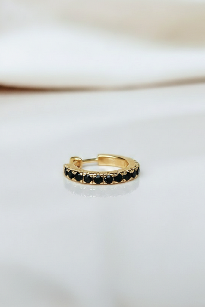 Einzelner vergoldeter Ohrring mit schwarzen Steinen Mai