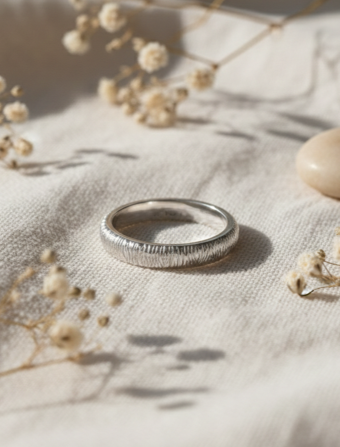 Silberner, strukturierter Stapelring Kichi (schmal)