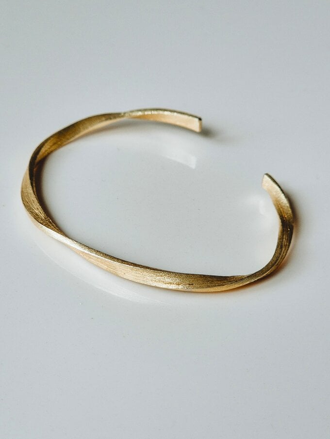 Mit ihrer gedrehten Ringschiene hat die Maella-Cuff-Armband eine verfeinerte Ausstrahlung. Sie ist elegant und leicht mit mattem Finish. Nicht zu grob, aber präsent genug, um aufzufallen. Ein Armband für ein raffiniertes Statement – solo getragen oder stilvoll im Stack mit anderen Armbändern.