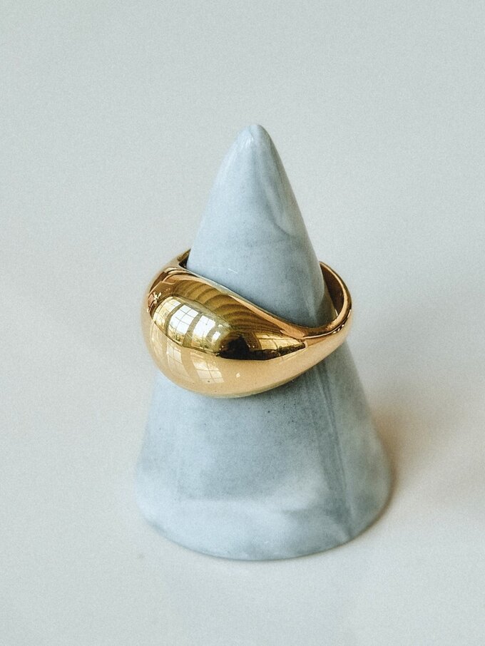 Der Ophélie-Ring ist eine moderne Interpretation des klassischen Kuppelrings: mit einer organischen Wölbung an der Oberseite, die nahtlos in den restlichen Ring übergeht. Vollständig glatt, hochglänzend und aus einem Stück geformt – wie eine fließende Skulptur um deinen Finger. Die abgerundete Form verleiht diesem Ring ein markantes Volumen, ohne grob zu wirken. Größenverstellbar für einen bequemen Sitz.