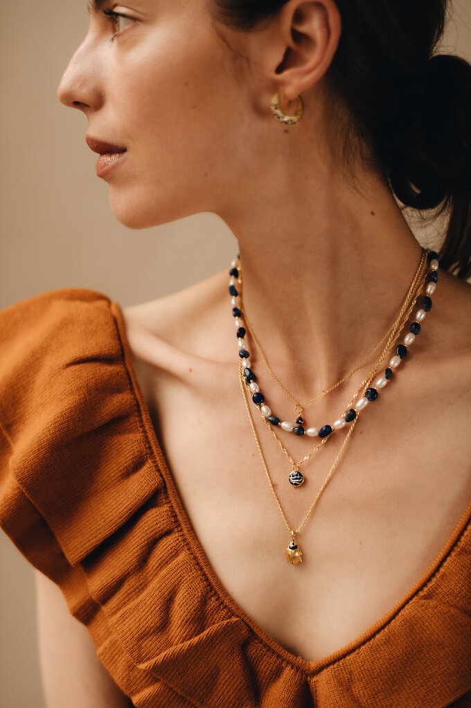 Vergoldeter Lapislazuli & Perlenkette Aiko