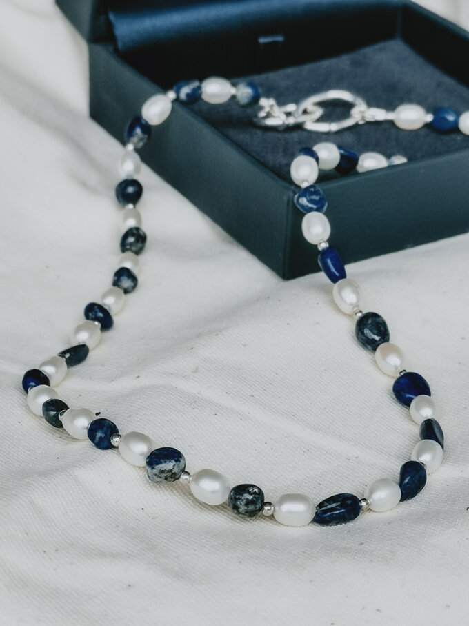 - Stone: lapis lazuli & freshwater pearls