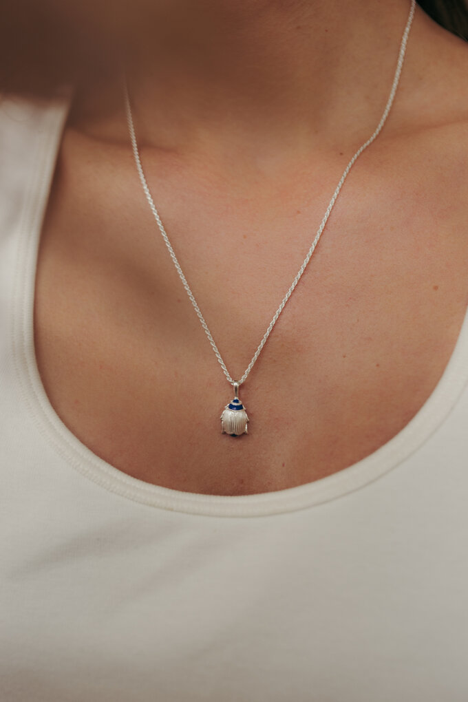 Enamel Scarab Beetle Pendant Mitsu, Silver