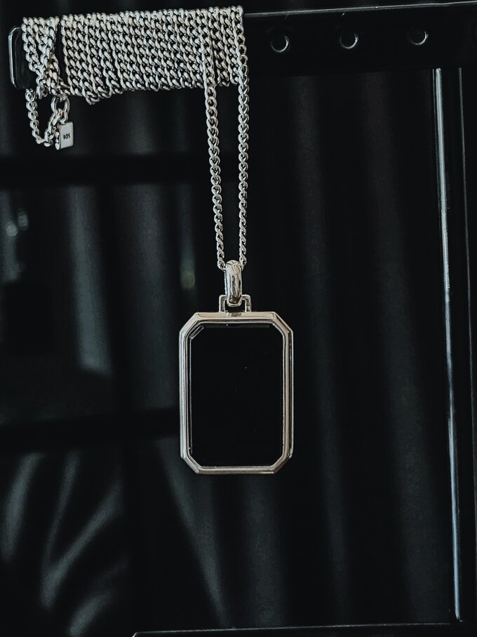 Un pendentif affirmé, orné d’une pierre d’onyx noir. À la fois sobre, élégant et puissant. L’onyx symbolise la protection ainsi que la force émotionnelle et physique – sa teinte noire intense permet de l’associer facilement à d’autres bijoux.