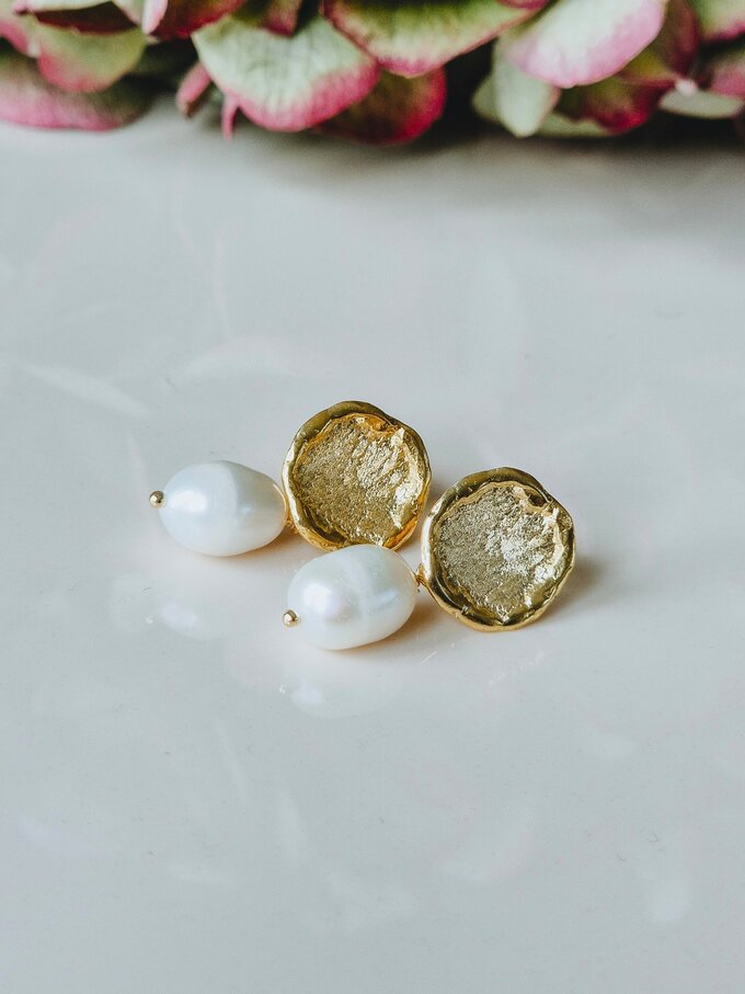 De Jolène-oorbellen combineren karakter met ingetogen elegantie. Een licht holle, organisch gevormde cirkel vormt de basis, met een textuur die doet denken aan natuurlijk gesteente. Aan de studs hangt een ovale witte zoetwaterparel, die zacht contrasteert met de cirkel erboven. Een tijdloos paar oorbellen waar je jarenlang plezier van zult hebben. Verkocht als paar.