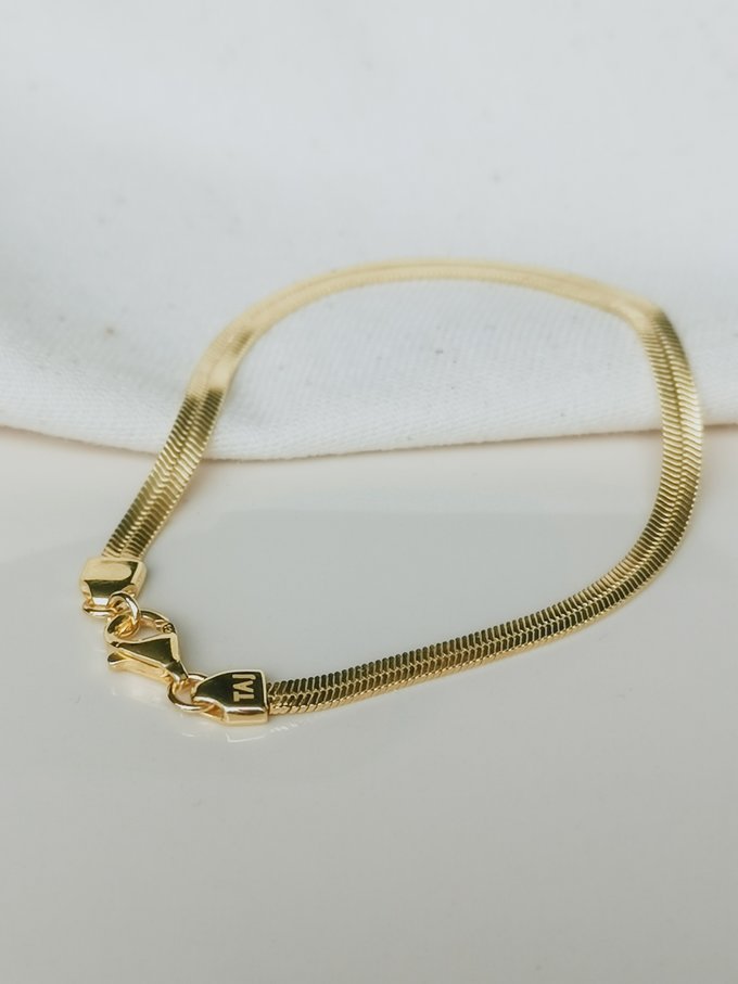 Subtiel en toch ook opvallend. Deze elegante, platte armband volgt de lijnen van je pols en zorgt ervoor dat ze het licht op elk moment prachtig vangt en zo een subtiele glans creëert. Dankzij het minimalistische ontwerp kun je deze slangenarmband prachtig bij andere sieraden dragen.