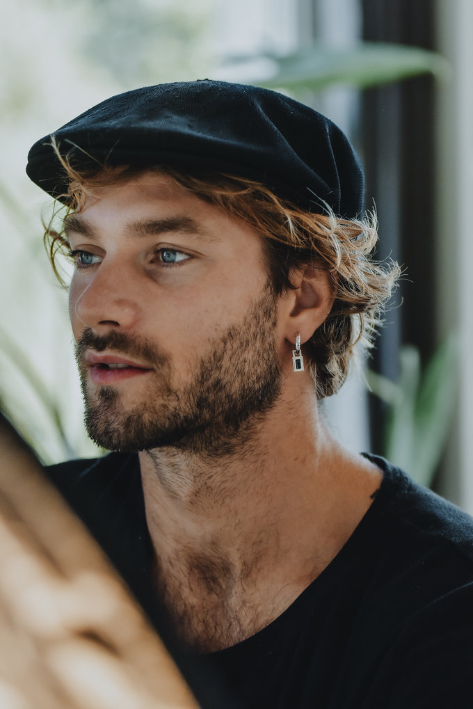 Een stijlvolle bedel met karakter. De Sokha-bedel is gezet met zwarte onyx in een getextureerde, rechthoekige lijst, een steen die symbool staat voor bescherming en kracht. Mooi aan onze Kamau-oorringen of het fijnere Jahi-ringetje. Liever wat groter? Combineer hem dan met de Kuat- of Beja-oorbel voor meer impact.